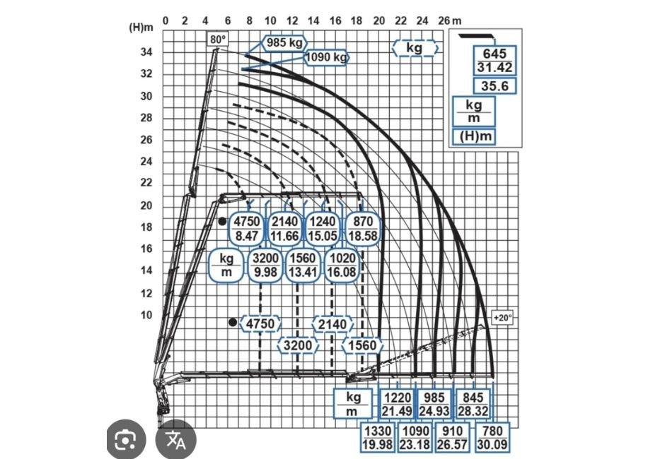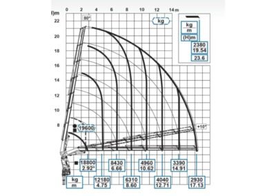 Nosnost hydraulické ruky se odvíjí od dosahu, resp. jejího vysunutí. Čím delší je vzdálenost pro dosah, tím menší je nosnost. Například: Při vzdálenosti 6,43 m je nosnost ruky 600 kg.